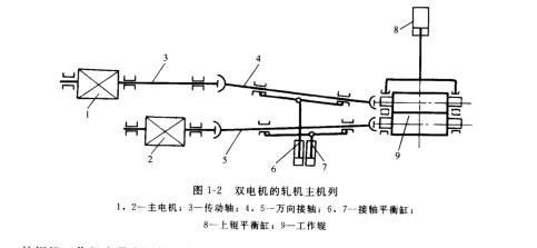 在某些大軋機(jī)上,如二輥可逆式初軋機(jī),四輥可逆式鋼板軋機(jī),住顫動(dòng)中設(shè)有減速機(jī)和齒輪箱(見圖1-2),每一個(gè)工作輥都用一個(gè)單獨(dú)電動(dòng)機(jī)驅(qū)動(dòng)。這不僅大大簡(jiǎn)化了設(shè)備,而且更重要的是解決了制造特大功率電動(dòng)機(jī)帶來的許多困難。