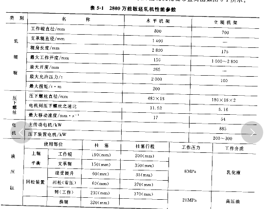 ****軋機是由水平配置的二輾(或四輥) 和一對立輥共同構(gòu)成的軋機。用于板坯初軋機或熱軋板帶開坯機。普通型 2800 ****板坯軋機設(shè)備性能見表 5-1,可軋出厚度為 19~30mm,寬度為 600~1 500mm 的帶鋼半成品。該****軋機軋輾輥布置簡圖如圖 5-1 所示。